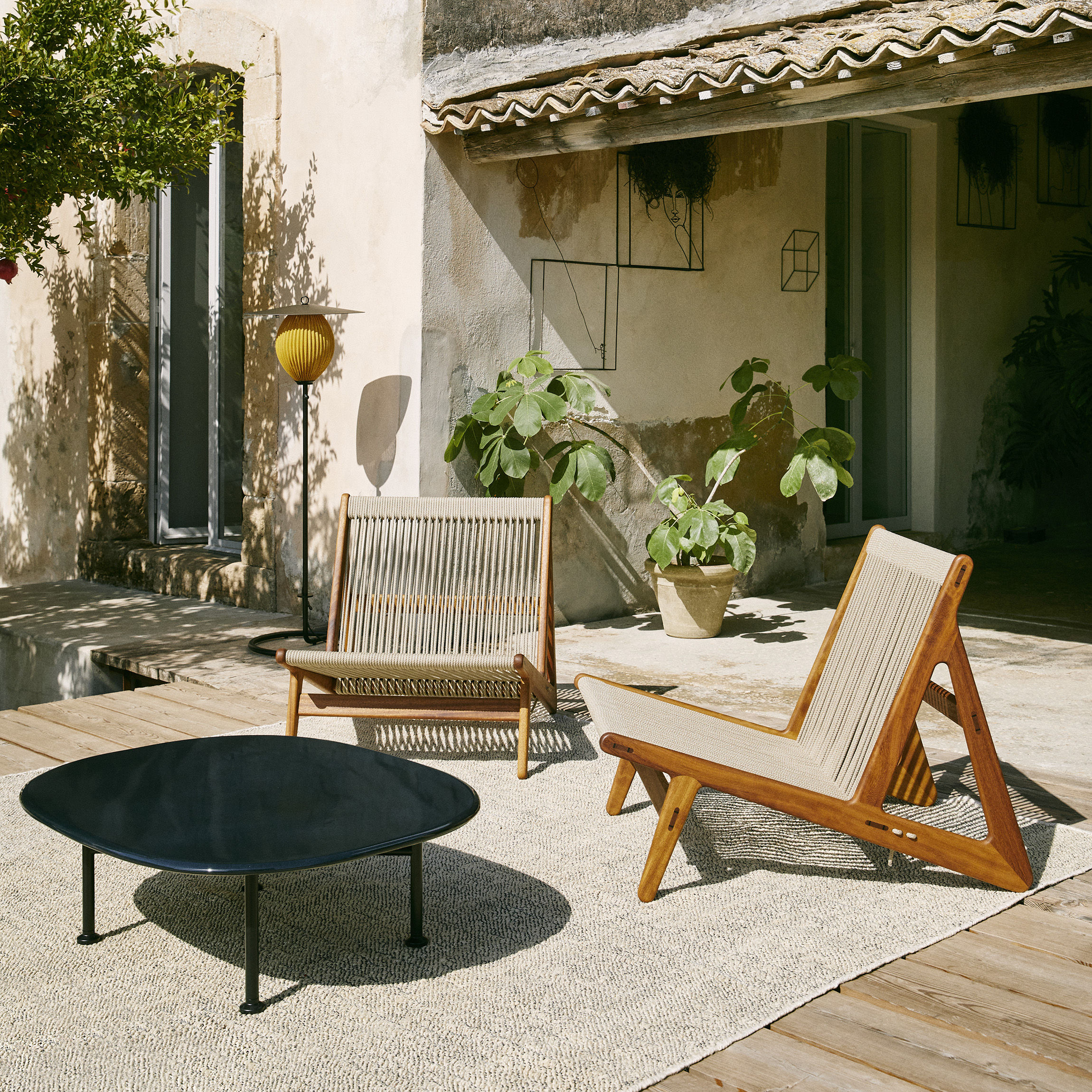 - Caractéristiques : Pour l’intérieur & l’extérieur – Fabriqué artisanalement avec des techniques d’ébénisterie traditionnelles – Corde imperméable, résistante aux UV et à la moisissure – Assise tissée à la main avec 90 mètres de corde, selon une méthode développée par le designer lui-même – Assise basse, souple et confortable